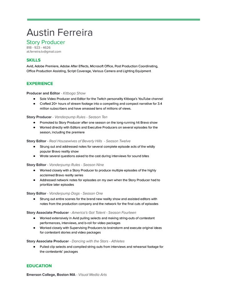 Born in Granada Hills, California. Currently residing in North Hollywood, California. Graduated from Emerson College in 2017 with a Bachelor’s Degree in Visual Media Arts with a specification in Film Production. Began a career in unscripted television beginning with Beyond Stranger Things that same year as a Producer’s Assistant. Since then, I have worked on a myriad of shows in legacy media while offering my talents to content creators and businesses on a freelance basis.